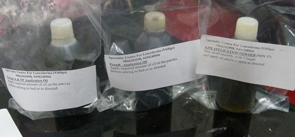 Medicines were researched and introduced in July 2019. It contains powder of rare 5 herbs which need to be taken 1/2 teaspoon before breakfast and in the evening. We are dispensing to those whose patches are widespread, slow progress or showing signs of spreading before coming to us.