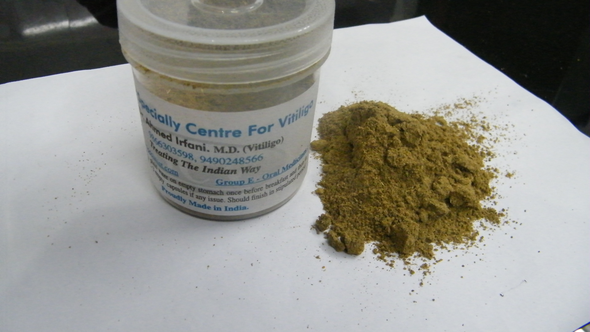 Contains 5 herbs and grinded into fine powder is our new formulation and development towards treating Vitiligo cases.